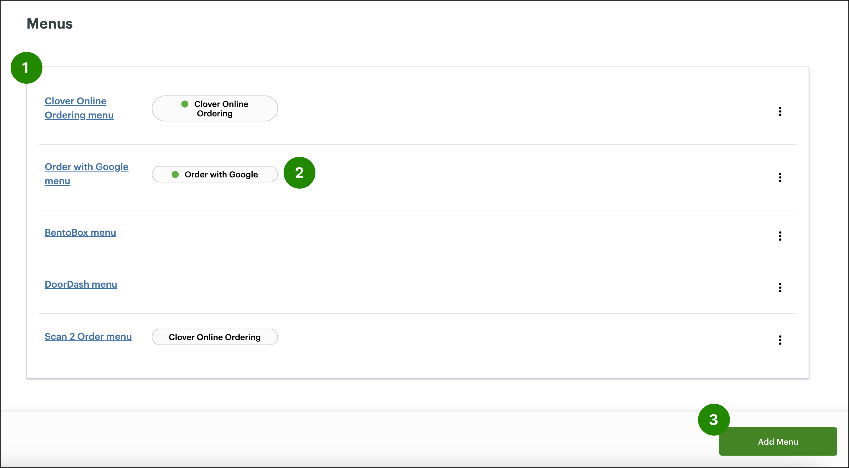 Multiple menus allows you to create and manage separate menus for each online ordering partner, including Clover Online Ordering, BentoBox, Uber Eats, Grubhub, Order with Google, and Doordash. Each menu can display different categories, items, and ...