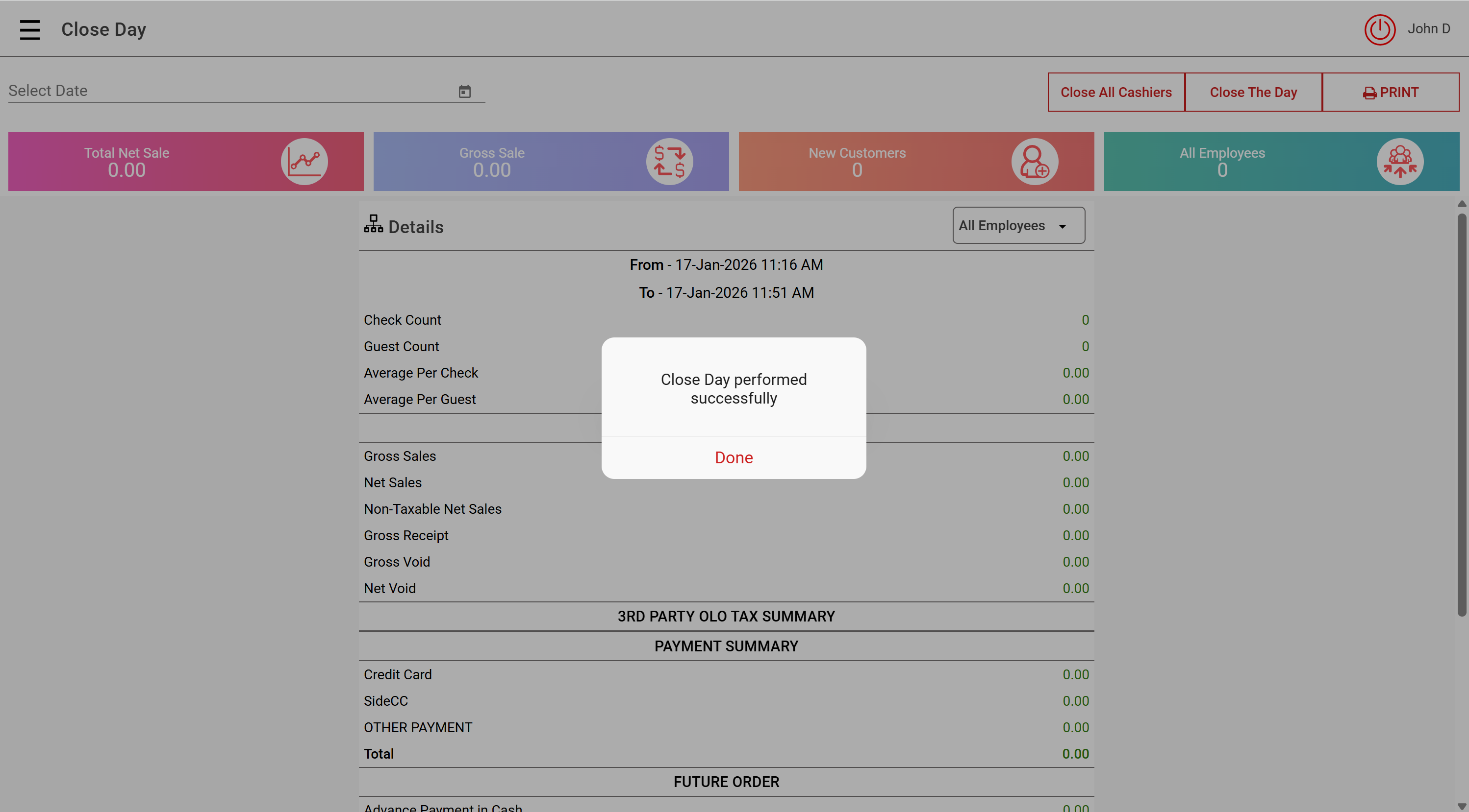 You have now successfully Closed the Day: