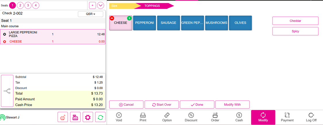 The Prefixes available for a Modifier appear on the right-side of the Order screen:
